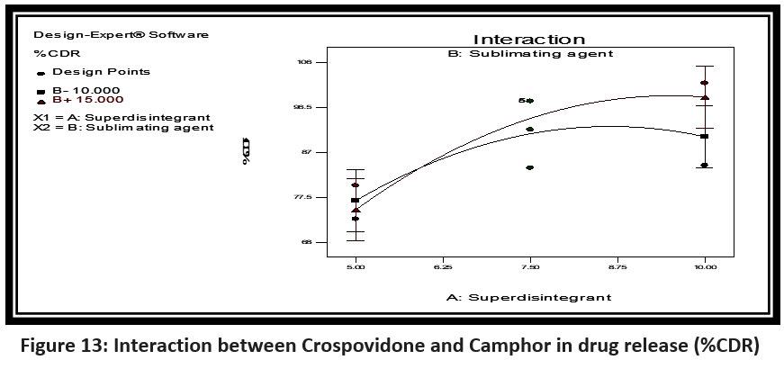 Figure 13: Interaction between Crospovidone and Camphor in drug release (%CDR)Click here to view Figure