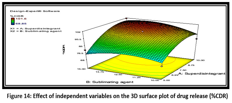 Figure 14: Effect of independent variables on the 3D surface plot of drug release (%CDR)Click here to view Figure