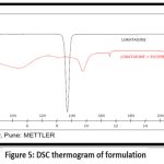 DSC (Differential Scanning Calorimetry) studies were conducted on both pure Loratadine and the optimized formulation batch, such as F14. Approximately 5 mg of accurately weighed Loratadine and the optimized formulation were subjected to DSC analysis using an automatic thermal analyser system.