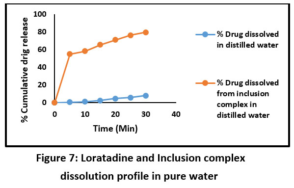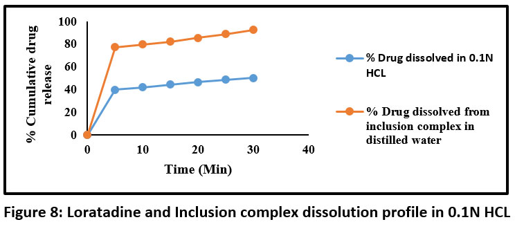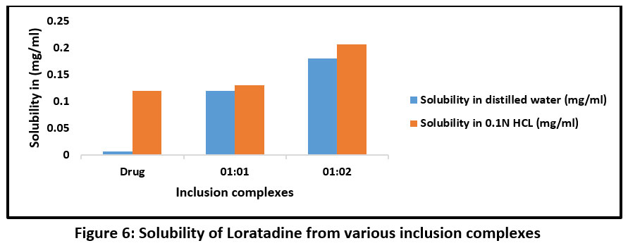 Loratadine solubility both in its inclusion complexes and as a bulk drug was assessed in both distilled water and 0.1N HCL.