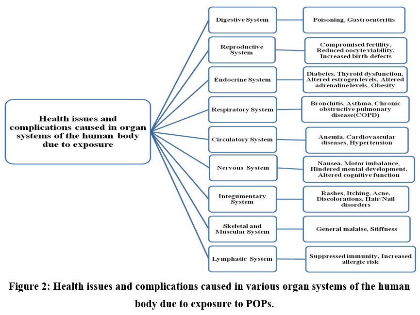 Figure 2: Health issues and complications caused in various organ systems of the human body due to exposure to POPs.