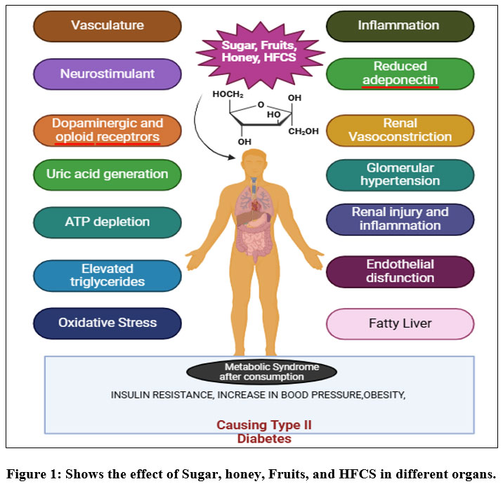 Figure 1: Shows the effect of Sugar, honey, Fruits, and HFCS in different organs.Click here to view Figure |