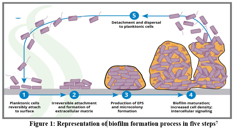 Figure 1: Representation of biofilm formation process in five steps7