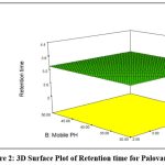 RSM model was chosen for DOE selection in contrast to factorial design. Because Box-Behnken provided a better interaction with a 3-factor and 3-level design with fewer runs than the BBD, it was selected for additional research. Three levels of Box–Behnken response surface design was used to optimize the method performance based on factor screening studies: low (−1), medium (0), and high (+1). CQAs (Rt and Tf) are chosen as dependent variables in DOE, while specific CMPs factors (pH of buffer, flow rate, and percentage organic modifier) are chosen as input variables (Table 1).12,13