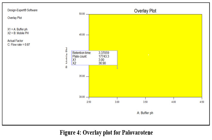 A QbD approach, with its emphasis on risk assessment and management, may result in the establishment of a more robust or rugged system. Critical quality attributes (CQAs) and the analytical target profile were evaluated by closely examining the detailed process for analytical QbD-based optimization parameters. The present research sought to establish an accurate, simple, precise, robust, and appropriate methodology of QbD principles for the establishment of an RP-HPLC technique for estimating Palovarotene that is more robust and performs better. Three essential elements of the RP-HPLC approach buffer pH, flow rate and ratio of MP were used in the Box-Behnken design factor screening investigations. The BBD was applied to 3 independent and dependent variables at 3 levels using the Stat Ease trial version 12.0. With water Platisil C18-EP (4.6 x 250 mm, 5µm) column and comprising of a mobile phase KH2PO4 (pH 3.5): ACN (50:50 ml) v/v, a 1.0 ml/min flow rate and UV range at 261 nm, the best chromatographic separation was accomplished. The interrelationships between MP, pH, and flow rate at 3 distinct levels are described by the Box–Behnken experimental design. RSM plots and statistical data were used to evaluate the retention duration and theoretical plate responses. Each independent variables data design, which included ANOVA, perturbation and contour plots, and 3D model graphs, was reviewed. In this section, we examined how each element affected the response outcome. Using the ICH Q2 R1 criteria, the established RP-HPLC technology was linear, precise, accurate, robust. The lack of any desirable peak and no change in the drug’s retention time confirmed the usefulness of the established approach for quantifying Palovarotene in marketed capsules, suggesting that the method’s high specification and selectivity were reached.18-19 The current RP-HPLC method for palovarotene was in compliance with the suggested ICH recommendations. 20-22 The technique can also be utilized for quality control and laboratories evaluation aimed at the assessment of Palovarotene in the drug material and capsule formulation.