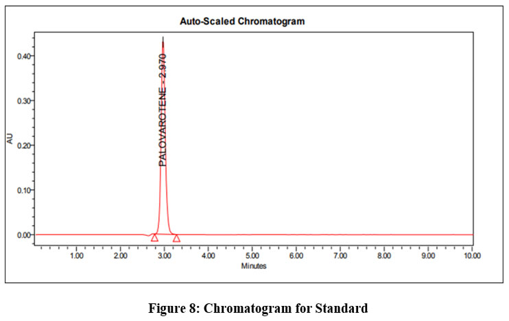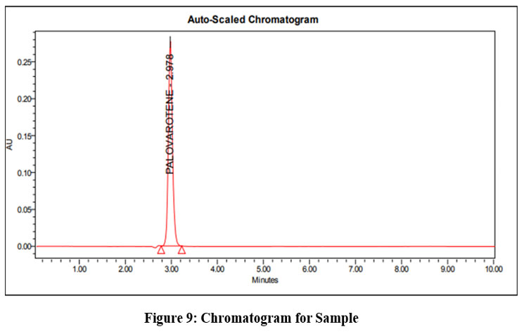 The observed values of LOD were 0.3μg/ml and the LOQ were 1.0μg/ml respectively for the Palovarotene. Table 10 shows the LOD & LOQ values for Palovarotene.
