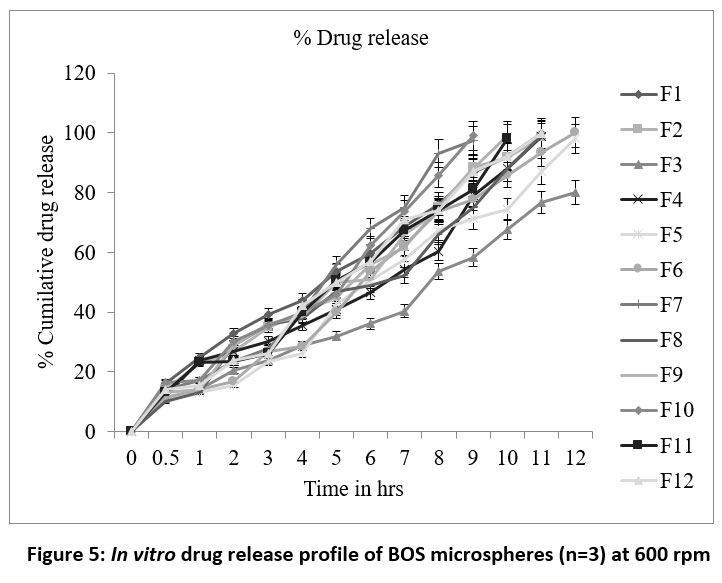 Figure 5: In vitro drug release profile of BOS microspheres (n=3) at 600 rpmClick here to view Figure |