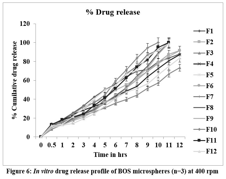 Figure 6: In vitro drug release profile of BOS microspheres (n=3) at 400 rpmClick here to view Figure |