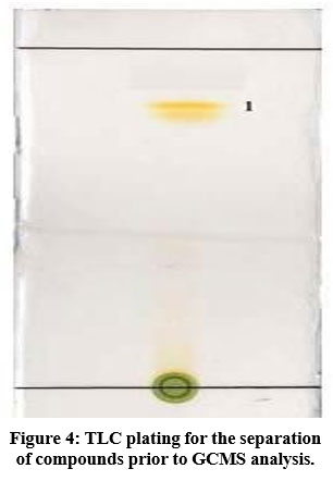 Figure 4: TLC plating for the separation of compounds prior to GCMS analysis. |