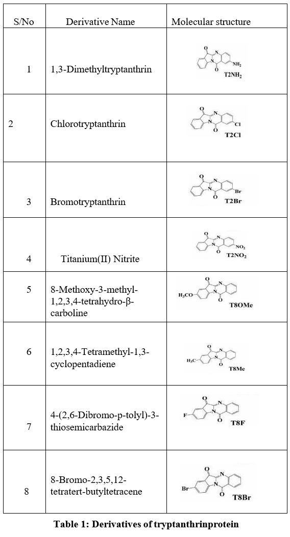 The study investigates the binding affinity of tryptanthrin (Fig: 1) with the melonama protein, a cancerous protein, using a docking study involving the protein structure downloaded from the RCSB site.