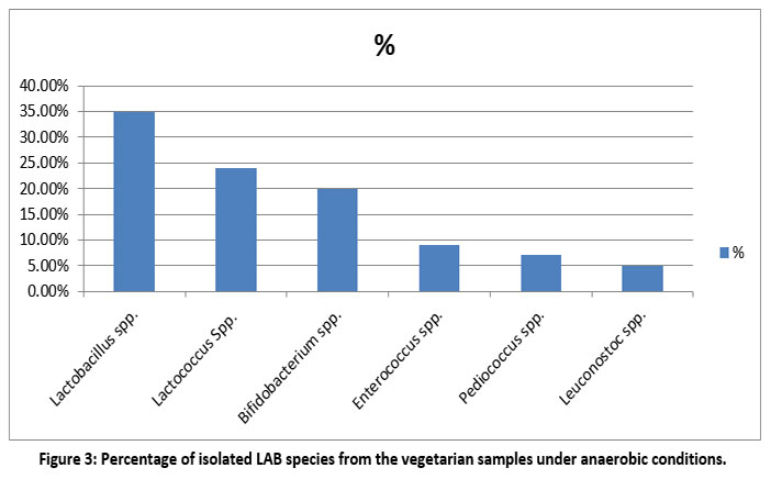 Figure 3: Percentage of isolated LAB species from the vegetarian samples under anaerobic conditions.