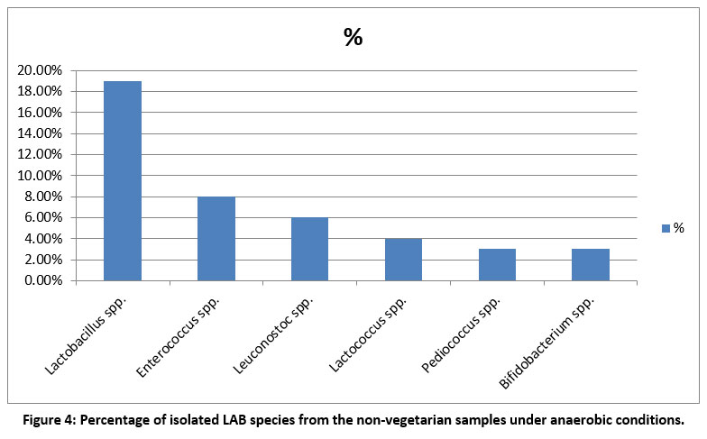 Figure 4: Percentage of isolated LAB species from the non-vegetarian samples under anaerobic conditions.