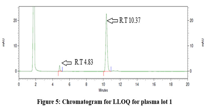 Figure 5: Chromatogram for LLOQ for plasma lot 1.