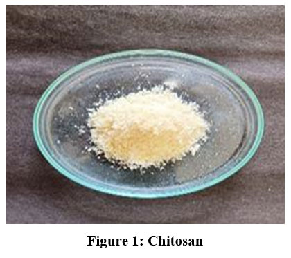 The shell of the Indian shrimp F. indicus was gathered and rinsed in boiling water to eliminate the adhered flesh and subsequently air-dried and then dried in an oven for 24 hours at 80° C.18 The desiccated samples were finely milled into powder using an electric blender and kept in an airtight container. For 30 minutes 20 g of the powder was treated with 1N HCl in the ratio (W/V) at 30±2°C. After that, it was rinsed under tap water until the pH of the processed sample turned neutral. Then for 2 hours the sample was deproteinized using 3.5 % NaOH in 1:10 (W/V) ratio at 75°C. The sample was washed further with tap water until its pH became neutral. The sample underwent treatment at 120°C for 3 hours with 60 % NaOH 1:10 (W/V) ratio, followed by a water wash, neutralization with tap water, and drying for 4 hours at 60°C.
