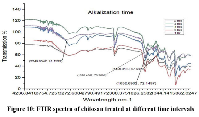 Figure 10: FTIR spectra of chitosan treated at different time intervals. |