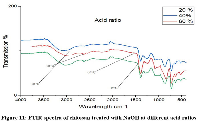Figure 11: FTIR spectra of chitosan treated with NaOH at different acid ratios. |