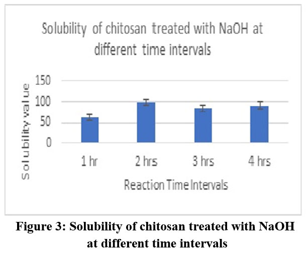 Figure 3: Solubility of chitosan treated with NaOH at different time intervals |