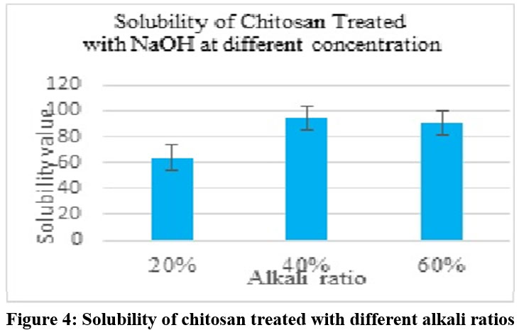 Figure 4: Solubility of chitosan treated with different alkali ratios |