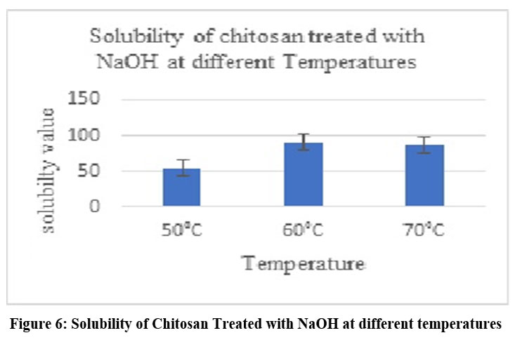 Figure 6: Solubility of Chitosan Treated with NaOH at different temperatures. |