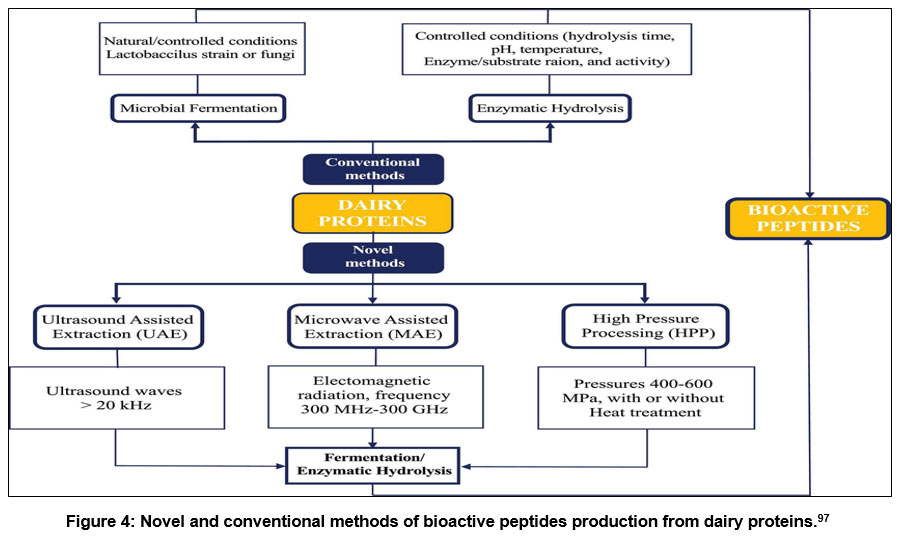 Figure 4: Novel and conventional methods of bioactive peptides production from dairy proteins.97Click here to view Figure