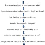 The bread was prepared in food laboratory using the protocol15 given in Fig 1.The first step involved thorough mixing of sugar and yeast in a large dish with warm water. This mixture was allowed to stand alone for 10 to 15 minutes.