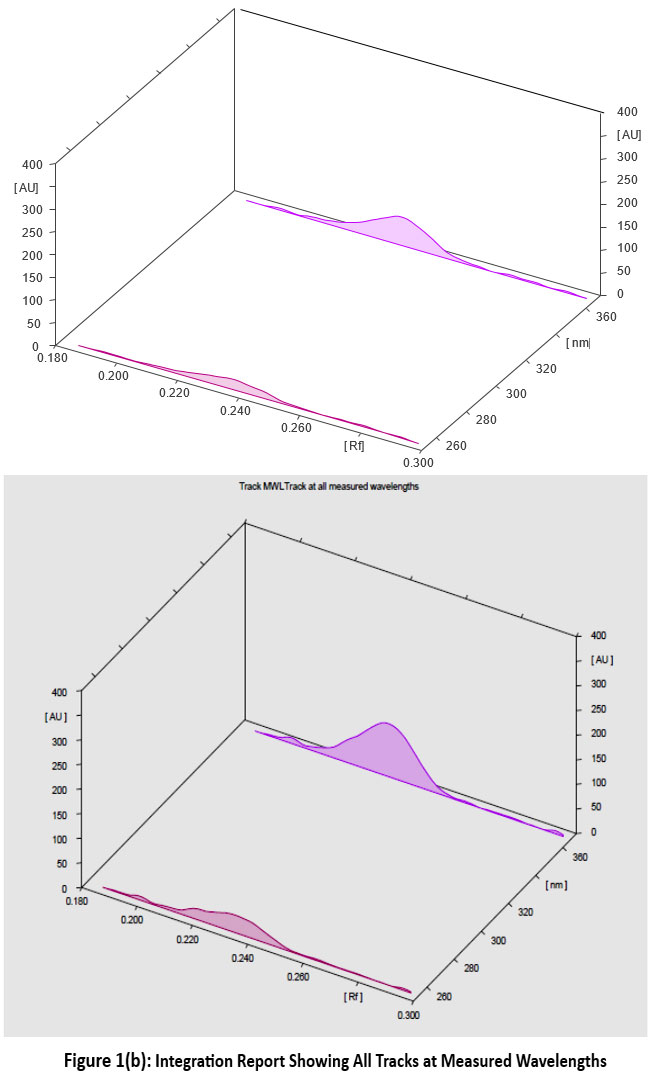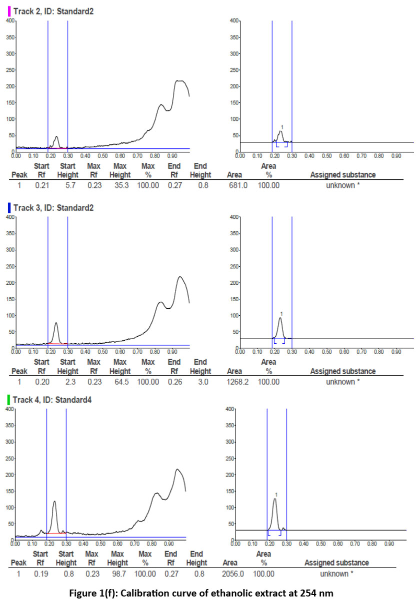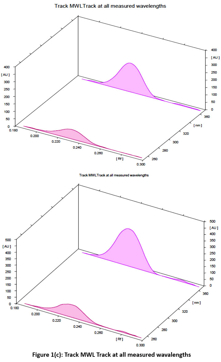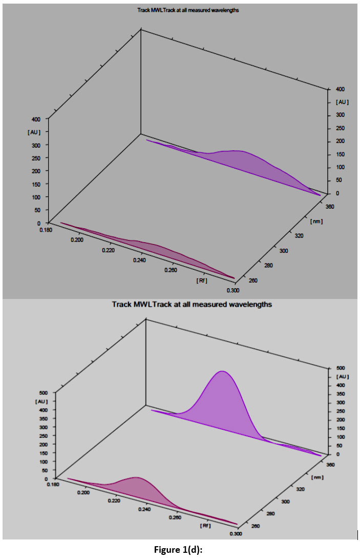 Figure 1. a, b, c, d HPTLC graph tracks view at multi-wavelength