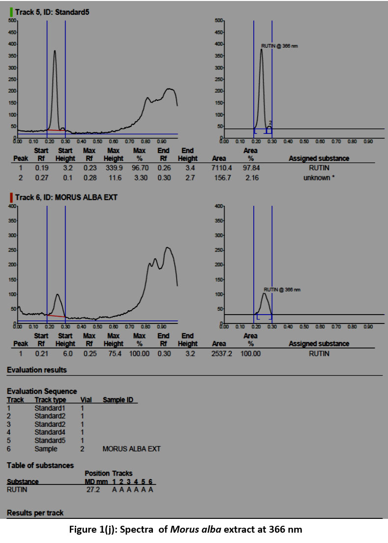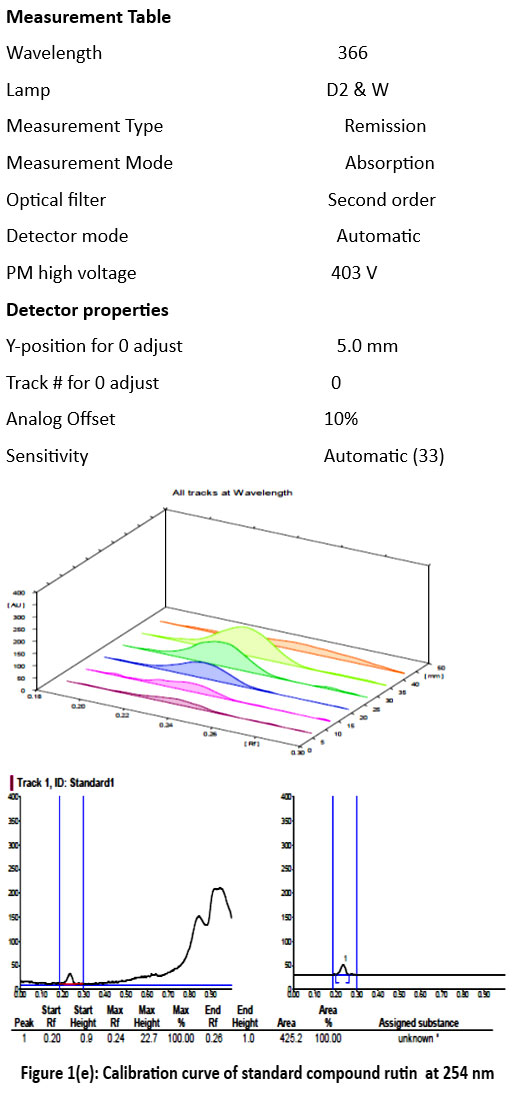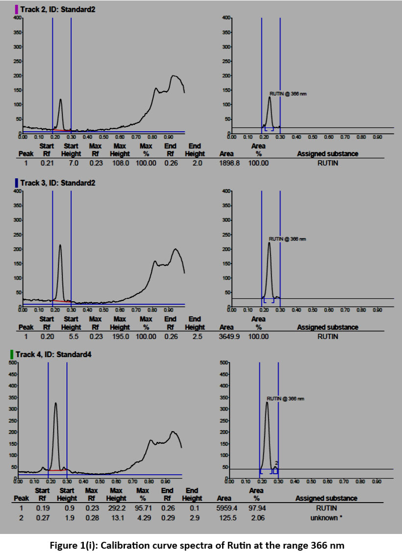 Figure 1(i): Calibration curve spectra of Rutin at the range 366 nmClick here to view Figure |
