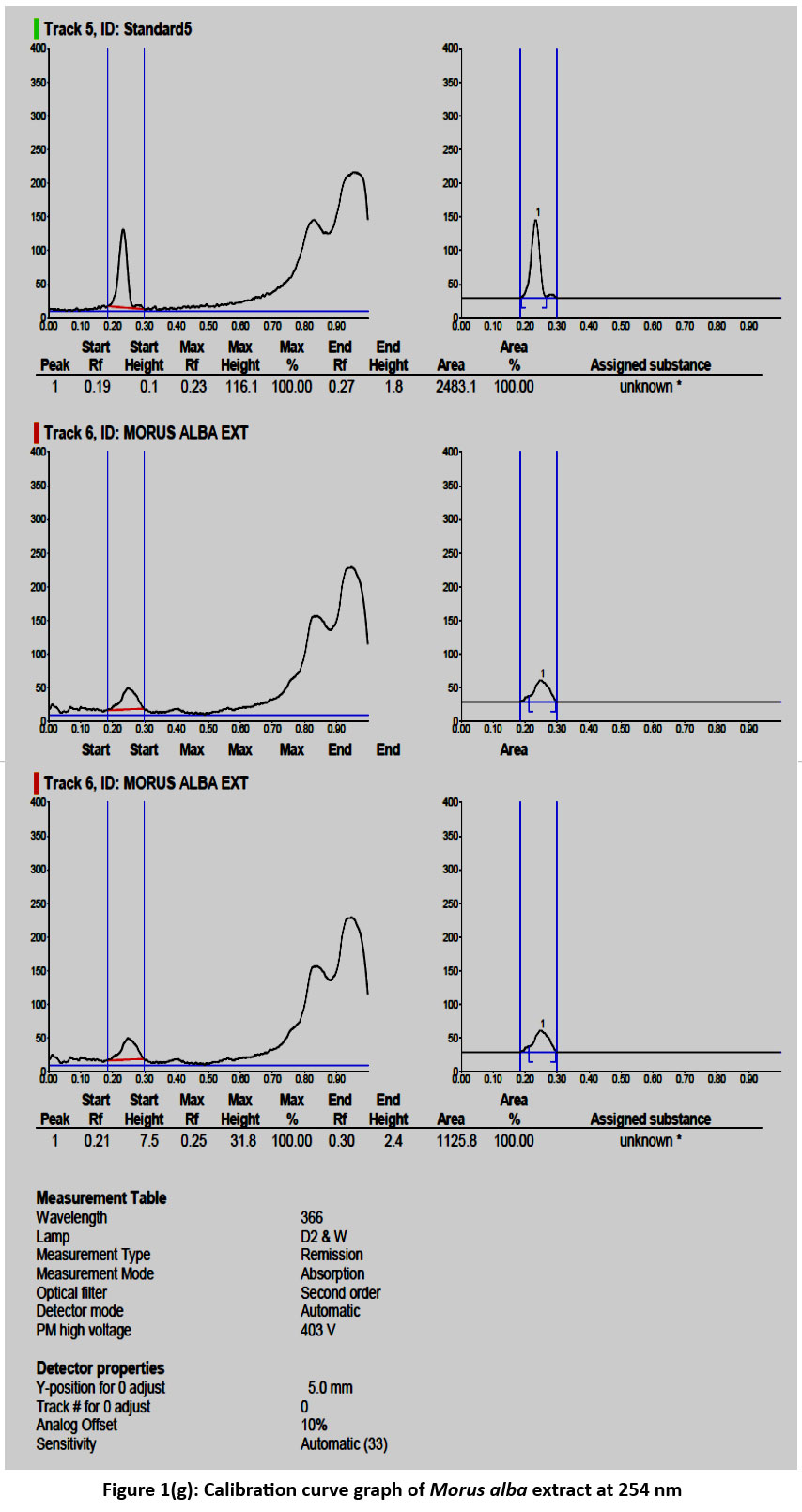 Figure 1(a): HPTLC Densitogram of Morus Alba Extract. |
