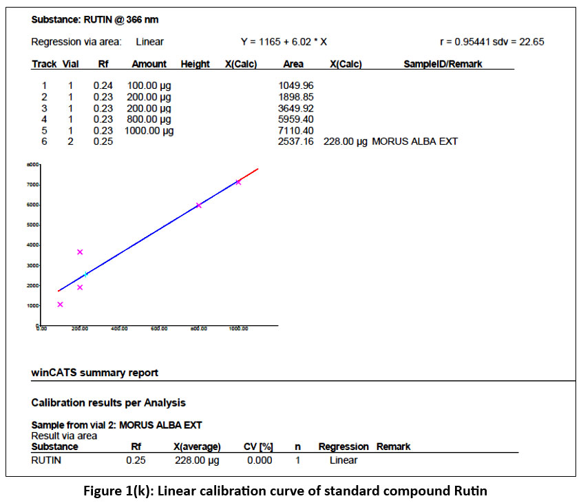 Figure 1(k): Linear calibration curve of standard compound Rutin |