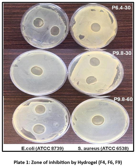 Plate 1: Zone of inhibition by Hydrogel (F4, F6, F9) |