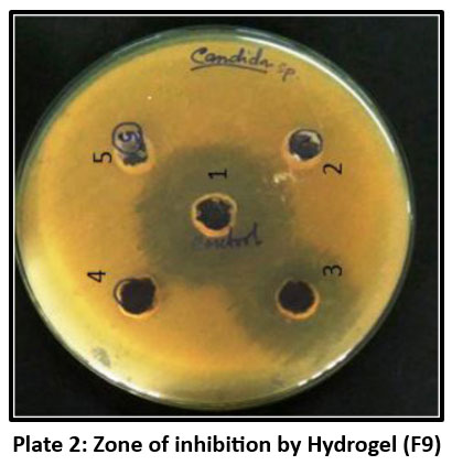 Plate 2: Zone of inhibition by Hydrogel (F9). |