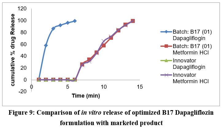 Figure 9: Comparison of in vitro release of optimized B17 Dapagliflozin formulation with marketed product