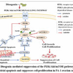 The PI3K/Akt pathway plays a central role in regulating cell growth, survival, and metabolism and is frequently hyperactivated in ovarian malignancies. Continuous activation of this pathway enhances tumor aggressiveness and fosters resistance to apoptosis. Diosgenin has been reported to inhibit PI3K/Akt signaling by reducing Akt phosphorylation, thereby blocking pro-survival pathways. This inhibition leads to decreased cell proliferation and heightened apoptotic responses. Molecular docking studies suggest that diosgenin may directly bind to PI3K and related proteins, elucidating its molecular inhibitory capabilities.