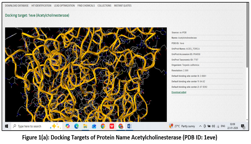Figure 1(a): Docking Targets of Protein Name Acetylcholinesterase (PDB ID: 1eve).