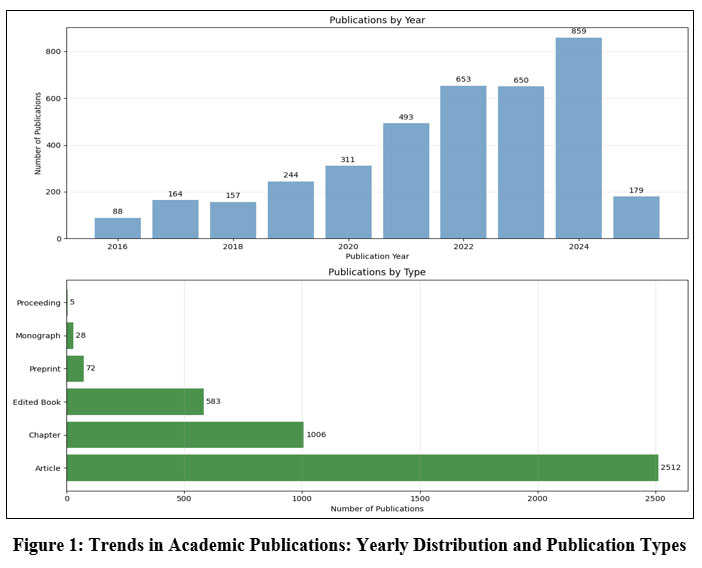 Figure 1: Trends in Academic Publications: Yearly Distribution and Publication Types.