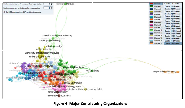 Table 3: List of major contributing Organizations and Co-citation analysis